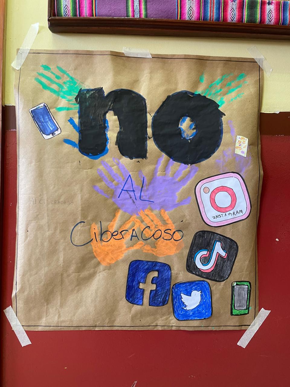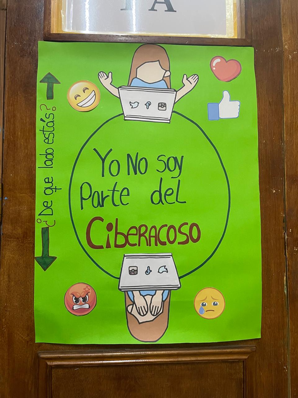 Para reforzar este compromiso, los estudiantes desde los niveles de sexto básico a Laboral, crearon un afiche donde expresaron su compromiso con la prevención del ciberacoso, como complemento a estas actividades, se instalaron diversos murales en nuestro colegio, reafirmando el compromiso de toda la comunidad educativa con la erradicación de esta problemática.