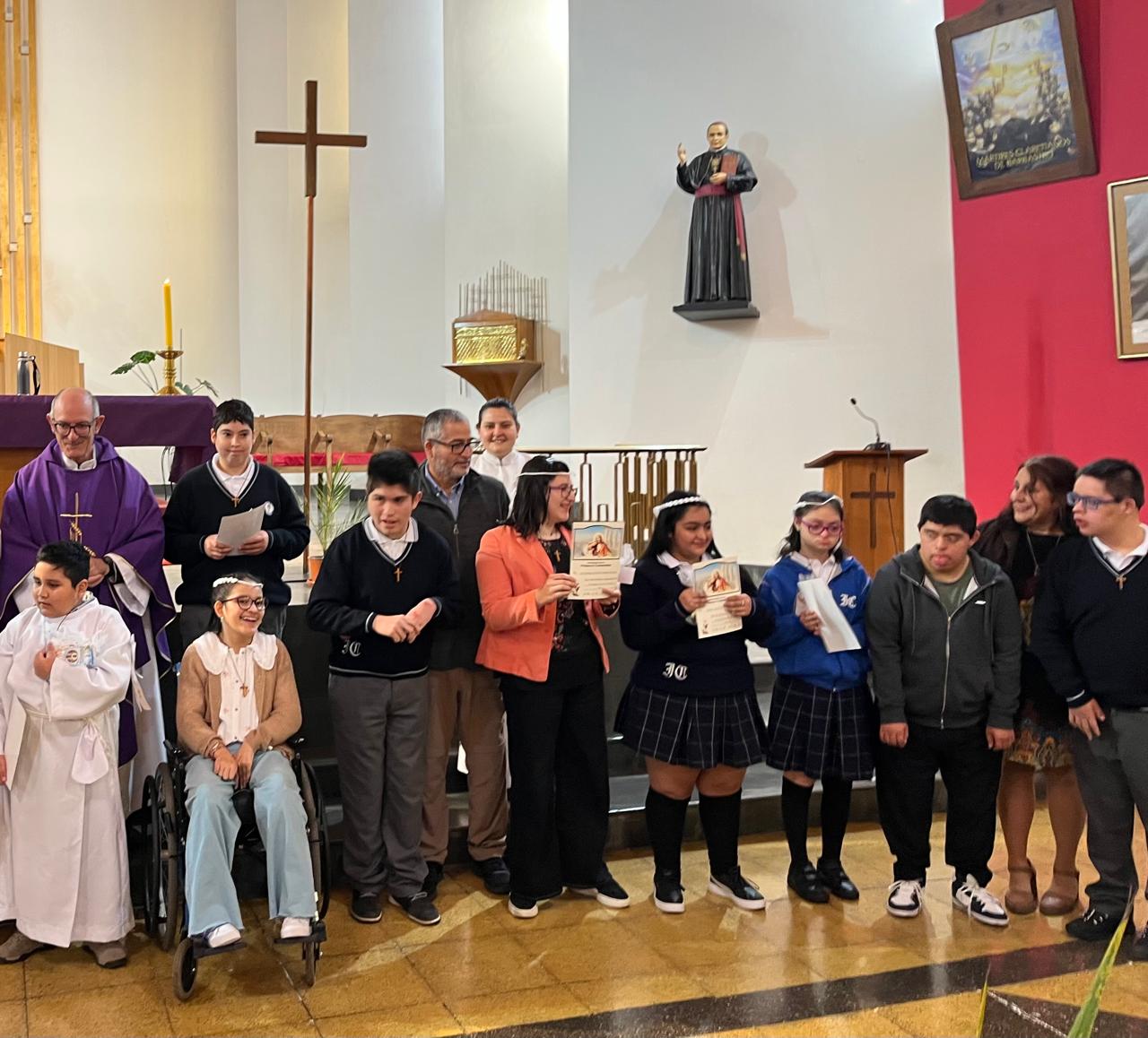 El pasado 06 de Abril, estudiantes de la Escuela Especial Claret, acompañados por sus familias y seres queridos, culminaron un importante hito, en el camino de la fe, al recibir el sacramento de la Primera Comunión,la ceremonia celebrada tras un proceso de catequesis impartido por el Equipo Pastoral del establecimiento, fue presidida por el Párroco de la Iglesia Corazón de María, Padre Fabian Husto, en un ambiente de alegría y recogimiento.