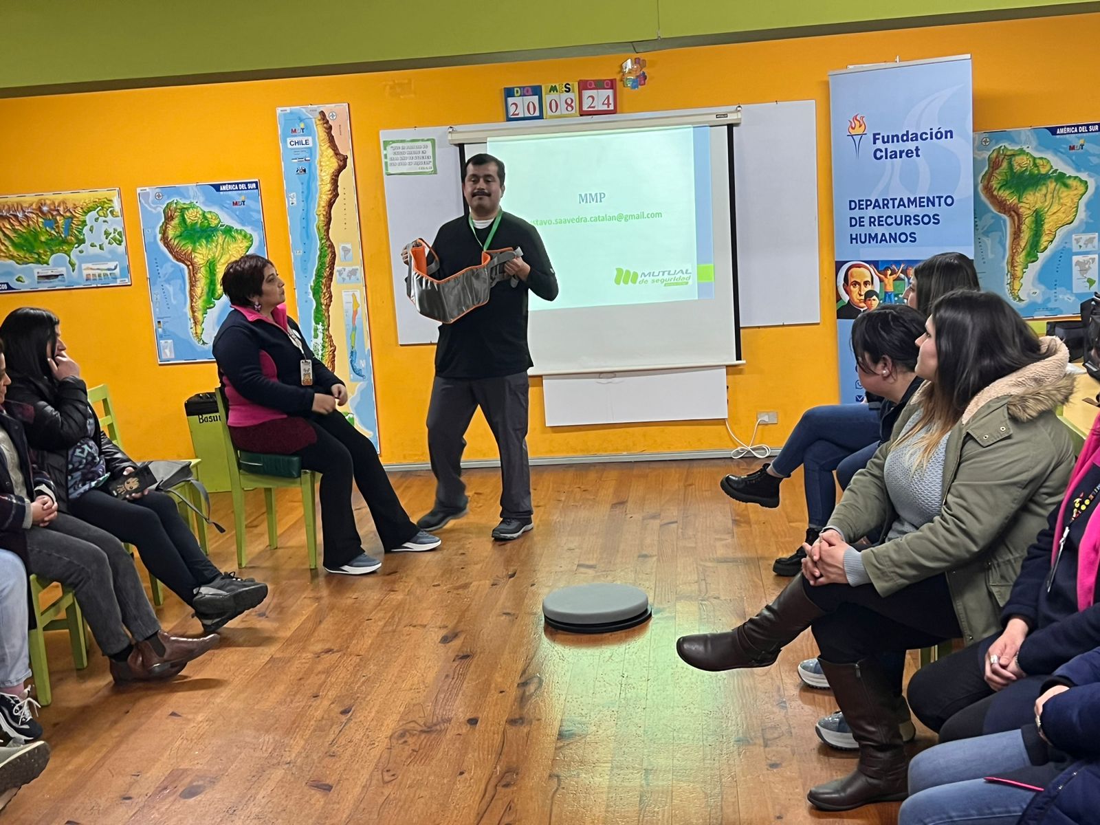 Fundación Claret en colaboración con Mutual de Seguridad, en su compromiso por promover la salud y seguridad en el trabajo, ha organizado una capacitación especializada dirigida a Asistentes Técnicas de Aula del Instituto Claret sede Centro y Escuela Especial Claret. Esta iniciativa, que se llevó a cabo este martes 20 de agosto a las 16:15 horas, tuvo como objetivo principal entregar a las/os trabajadoras/es las herramientas y conocimientos necesarios para realizar el cambio de ropa y mudas de estudiantes de manera segura, previniendo así lesiones y mejorando significativamente la calidad de vida laboral de nuestros/as funcionarios/as.